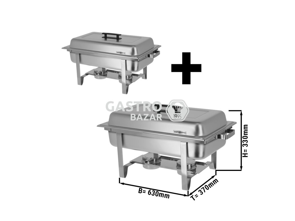 (2 kusy) Grilovací miska - GN 1/1 - s poklicí a nožičkami z nerezové oceli