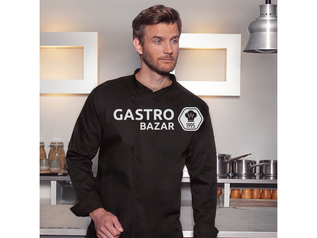 (6 pieces) KARLOWSKY | Long-Sleeve Pull-On Chef Jacket – Black - Size S - Mesh Back