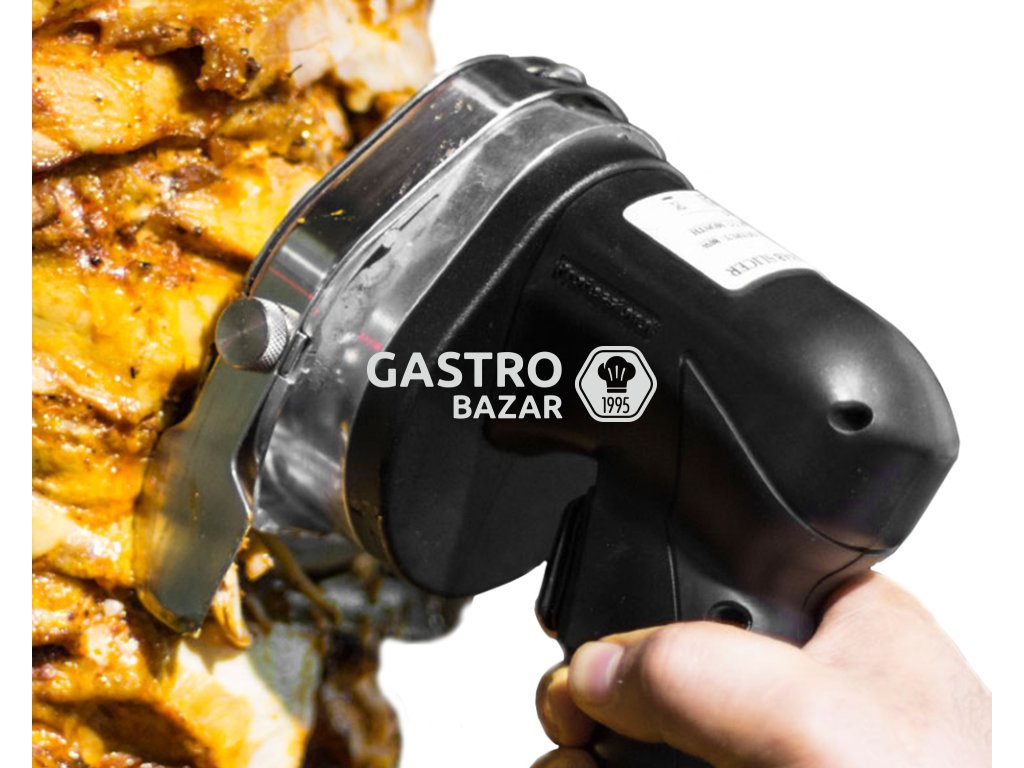 Akumulátorový kráječ kebabu - kapacita: 60 kg/den - vč. 2 baterií a brusného kamene BEZ ŘEZNÉHO KOTOUČE !!!