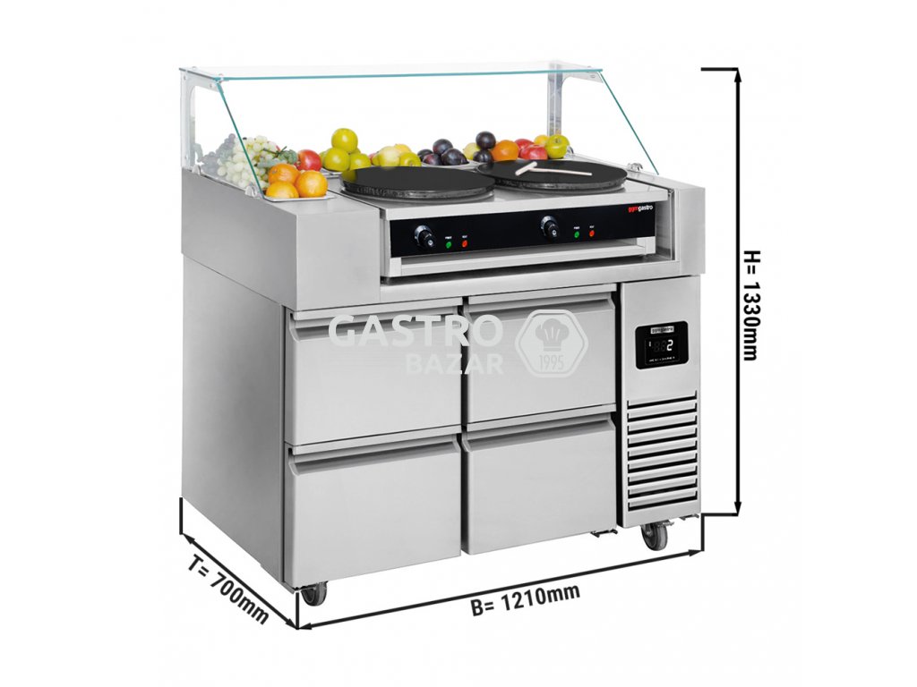 All in One vozík 1,21 x 0,7 m - se čtyřmi zásuvkami 1/2 - včetně zařízení na výrobu palačinek se 2 plotnami