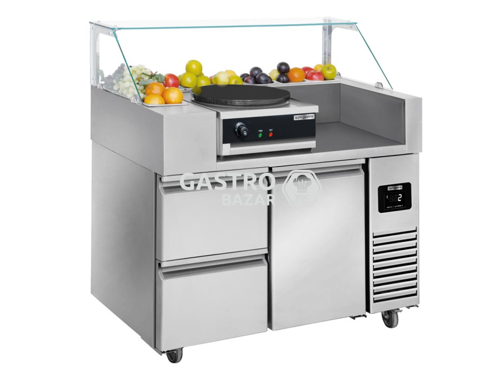 All in One vozík 1,21 x 0,7 m - s 1 dveřmi a 2 zásuvkami 1/2 - včetně zařízení na výrobu palačinek s 1 deskou