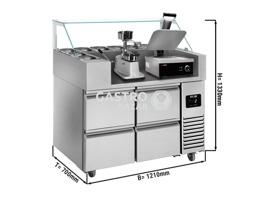 All in One vozík-1,21 x 0,7 m - se 4 zásuvkami 1/2 - včetně kontaktního grilu a hamburger press