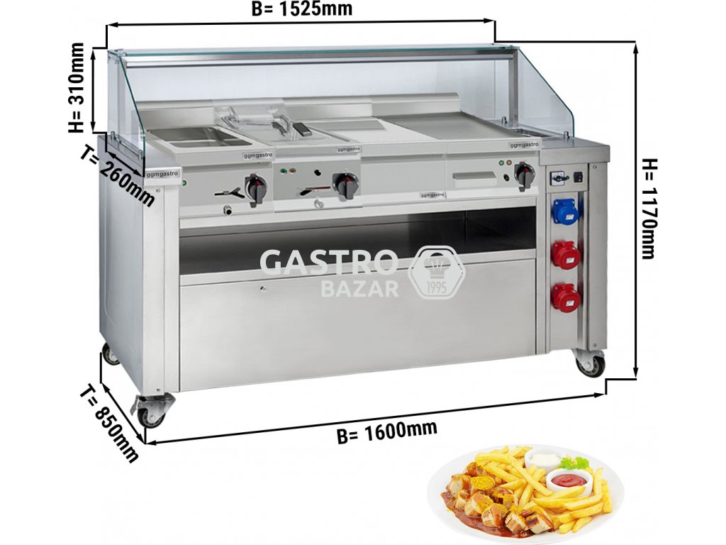 All in One vozík včetně fritézy, grilu vodní lázně a neutrálního prvku