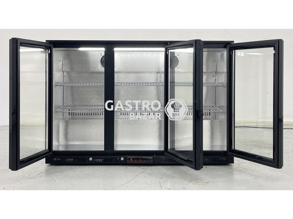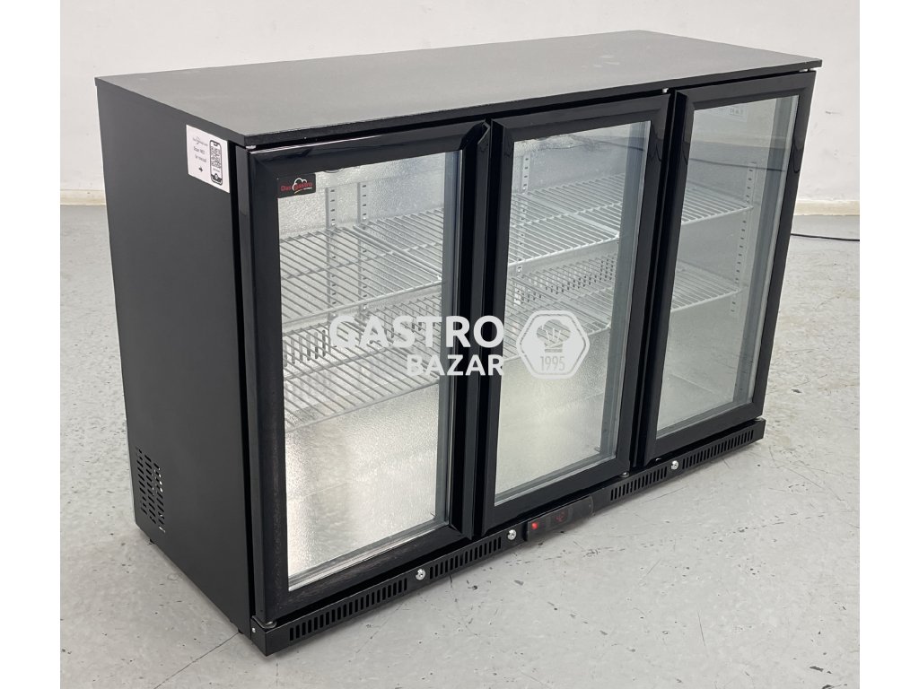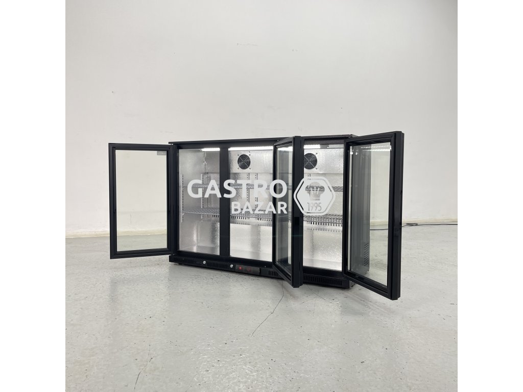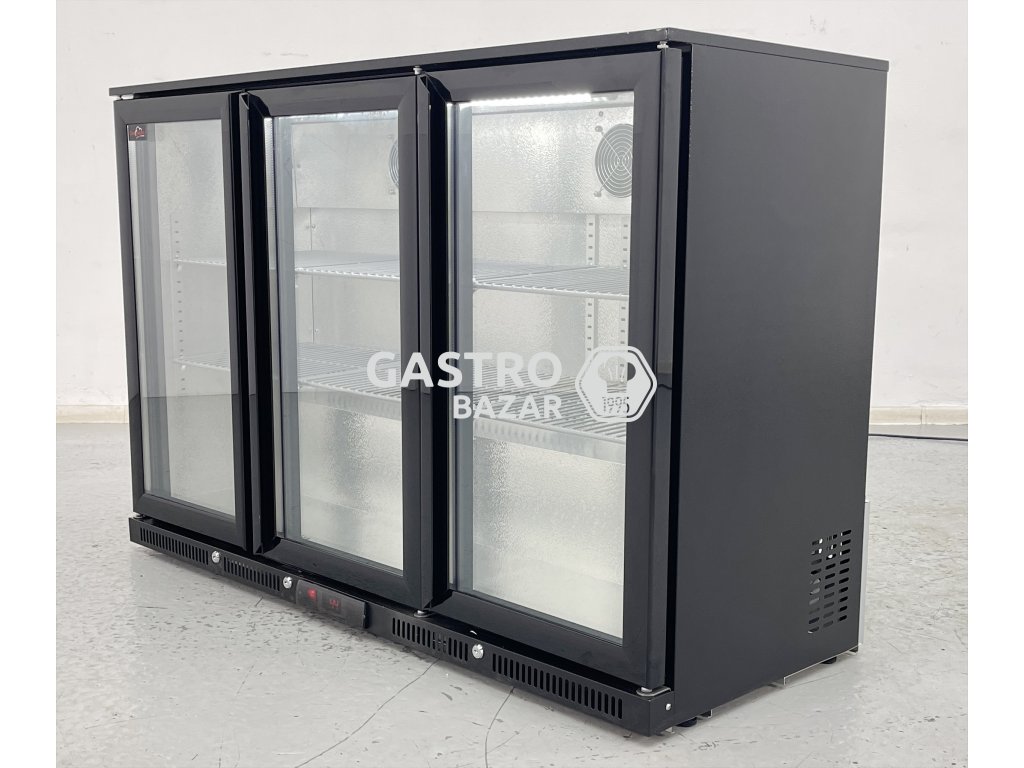 Barová lednice - 1350 x 540 x 900 mm, se 3 skleněnými dveřmi a 2 policemi - černá