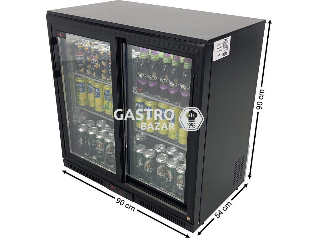 Barová lednička – 0,9 m – 190 l – se 2 skleněnými dvířky a 2 policemi – černá