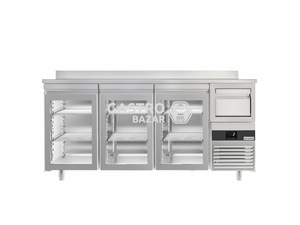 Barová lednička na nápoje 2,13 m - s 3 skleněnými dveřmi, s obkladovým panelem & odklepávačem na kávu