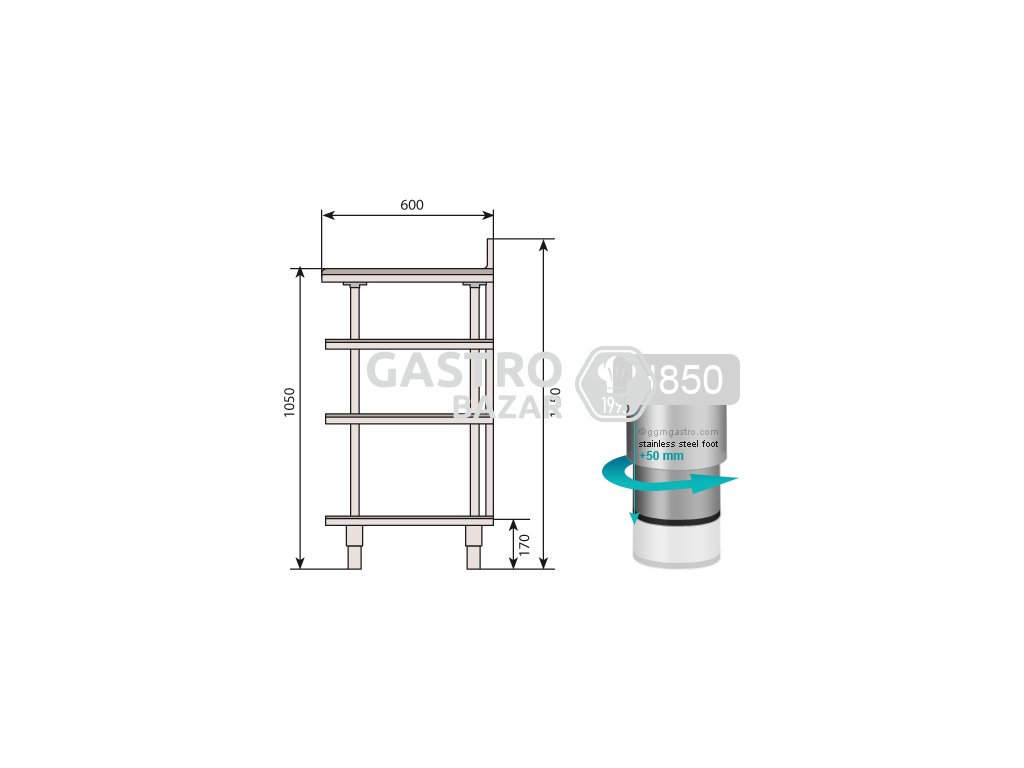 - Výškově nastavitelné nerezové nohy