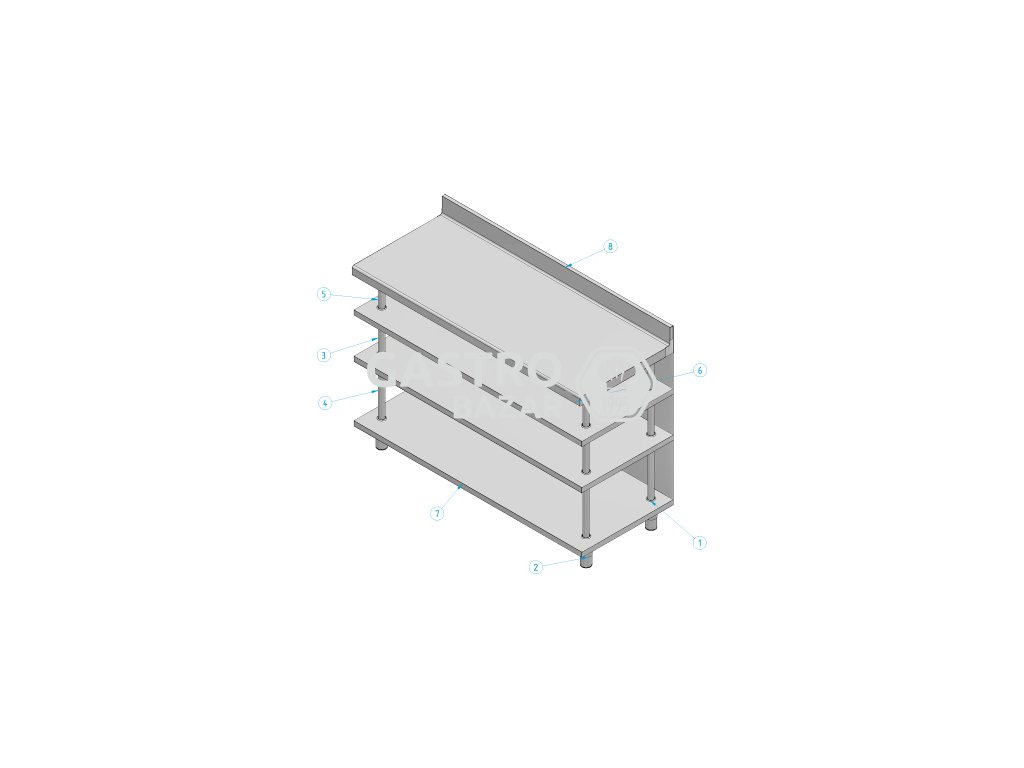 Barový pracovní stůl 1,5mx 0,6m, se 4 policemi