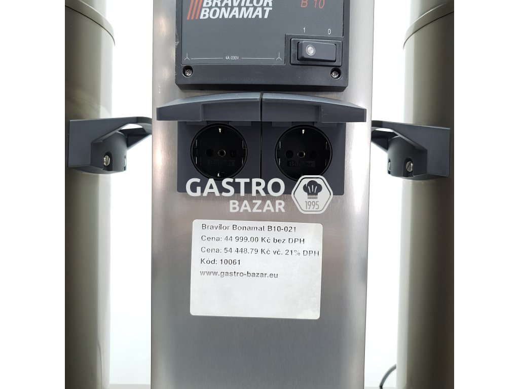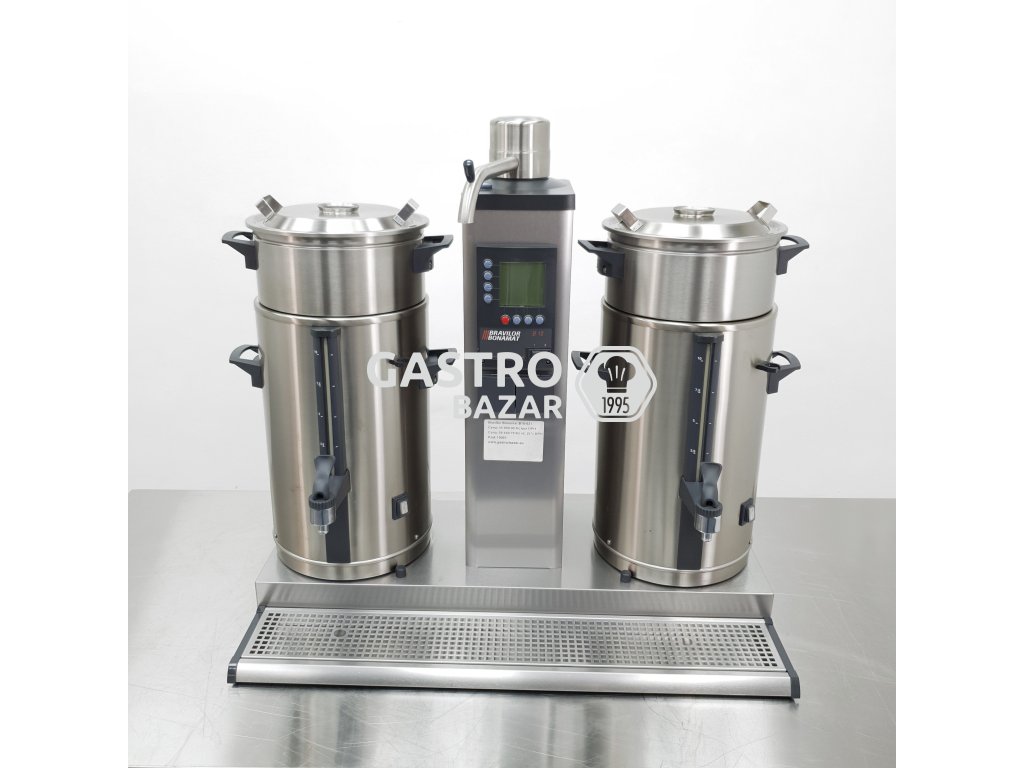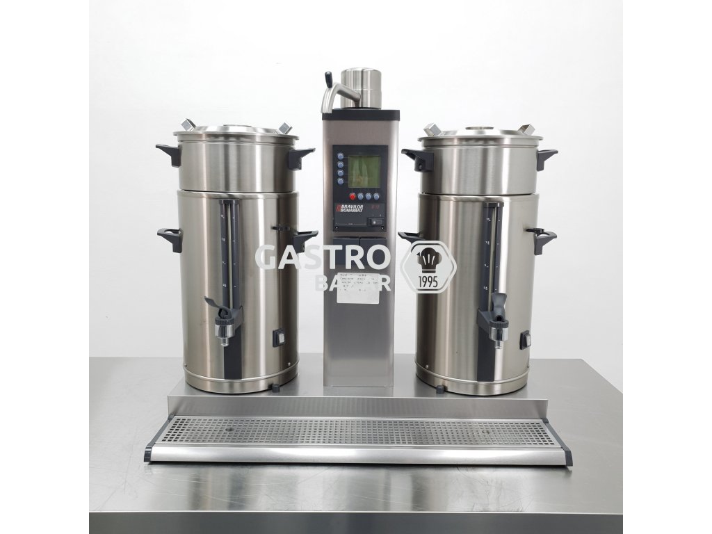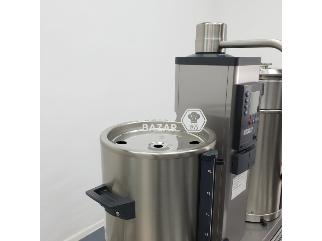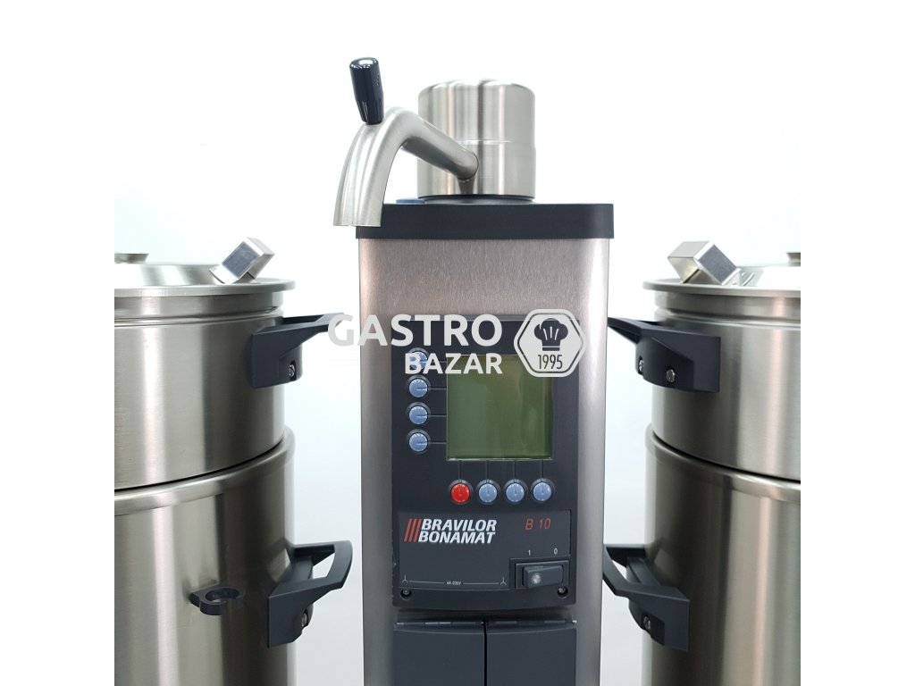 Model B10 je překapávač kávy od holandské firmy Bravilor Bonamat, s napětím 400 V. Rozměry zařízení 955×512×840 mm, 1 průtoková jednotka, 2 termosy (objem 10 litrů každý) pro přípravu většího množství kávy přímo do termosů. Je vybaven LCD displejem, počítadlem denního i celkového vydaného množství, signalizací „coffee is ready“ a systémem odvápnění. Výkon zařízení je až 480 šálků za hodinu. Vyhřívané termosy udržují kvalitu kávy. Zabudovaný časovač a optimální ochranný mechanismus zamezuje vylití horkých nápojů. Sada zahrnuje: filtrovací jednotku, vyhřívané termosy z nerezové oceli typu VHG, koše na filtry, podstavec a odkapávací mřížka. Tato série byla vyvinuta speciálně pro ty, kteří potřebují připravit velké množství kávy – v co nejkratším čase a s vysokým obsahem kofeinu. Výrobce Bravilor Bonamat nabízí rovněž modely pro připevnění na stěnu a modely pro lodní provoz k využití během plavby na moři. Překapávač kávy B10 s katalogovým číslem 4.210.101.110 distribuujeme v rámci celé České Republiky jako oficiální partner firmy Bravilor Bonamat, pro vybavení hotelového, restauračního a cateringového segmentu.
