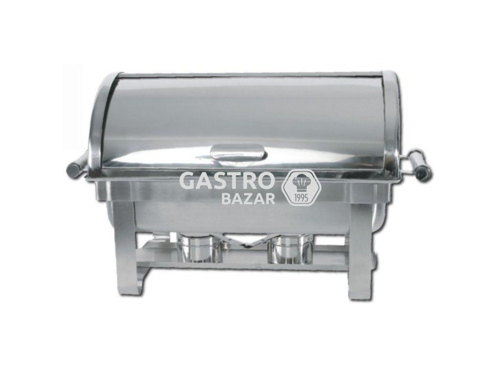Kvalitní chafing s otevíratelným víkem o 90°. Možnost připojení elektrického nahřívače. V sadě vana, gastronádoba GN 1/1 a dva držáky na pastu.