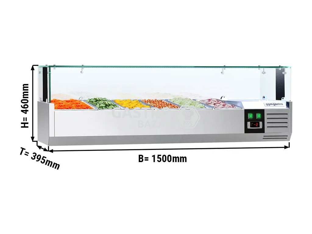 - Chladící pultová vitrína PREMIUM - 1500 x 395 x 419 mm, 5x 1/3 a 1x 1/2 GN