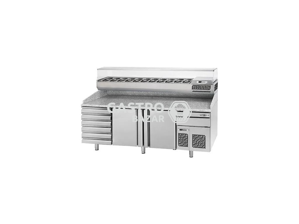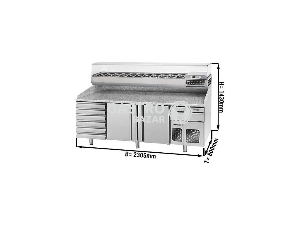 Commercial Refrigerated Pizza Prep Counter Premium PLUS - 2305x800 - 2 Doors - 6 Drawers - Top Display Rail - 11x GN 1/4