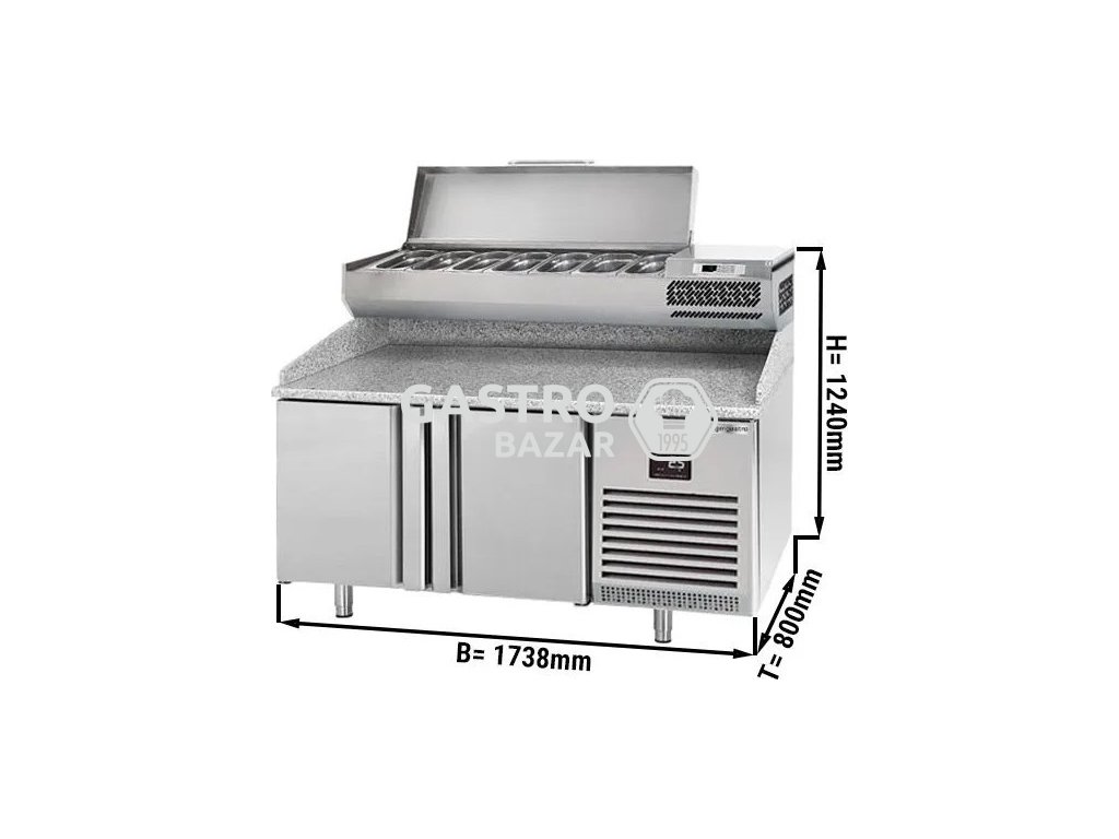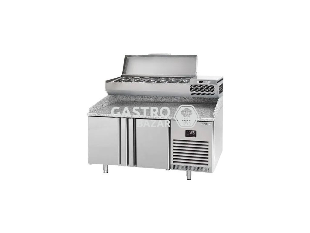 Commercial Refrigerated Pizza Prep Counter Premium PLUS - 1783x800 - 2 Doors - Top Display Rail - 7x GN 1/4