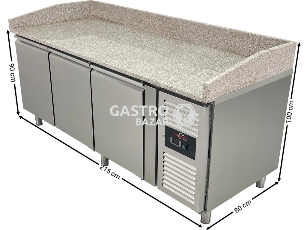 Chladící stůl na pizzu - 2015 x 800 mm - se 3 dvířky a saladetou 10 x GN 1/4