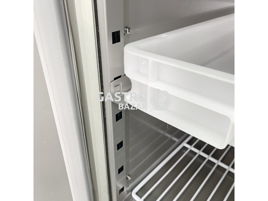 Sekce s dvířky: Každá obsahuje 1 nastavitelnou roštovou polici