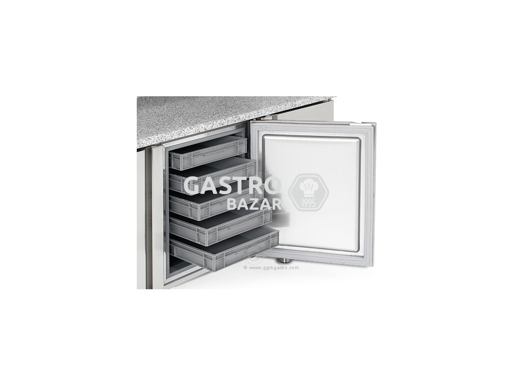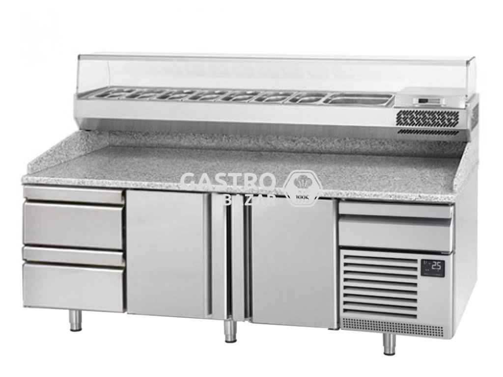 Chladící stůl na pizzu se 2 dvířky a 2 neutrálními zásuvkami 1/2