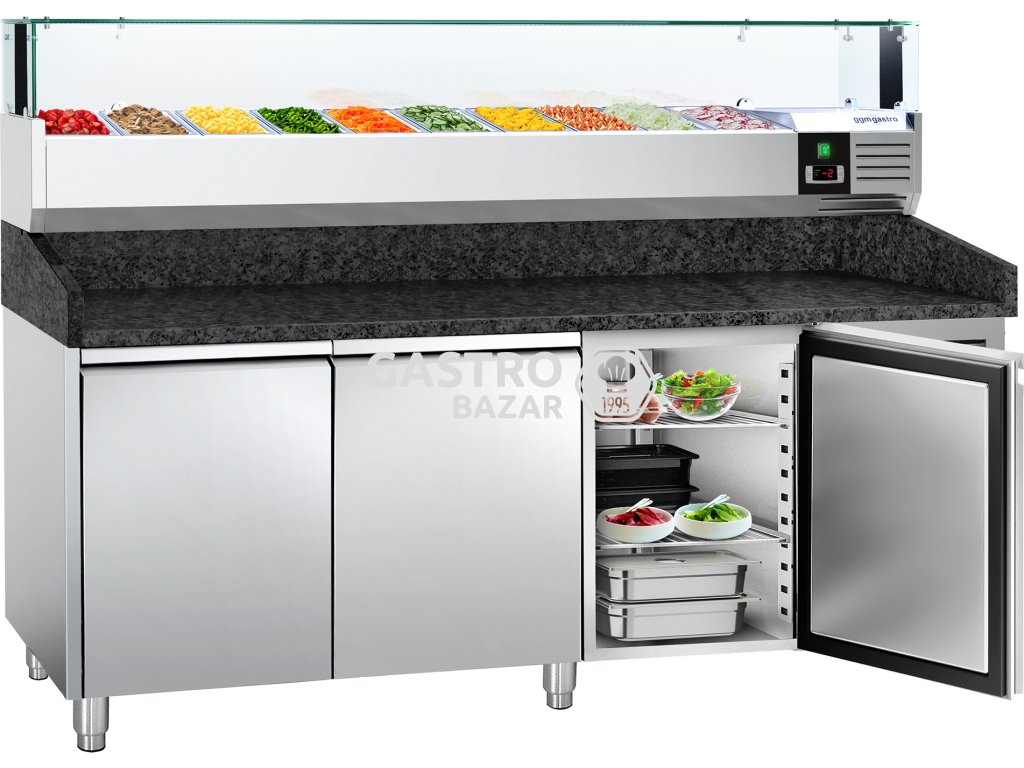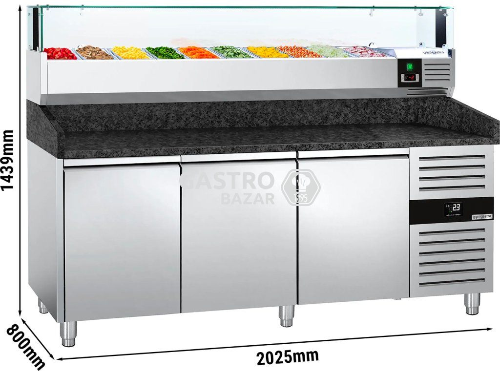 Chladící stůl na pizzuPREMIUM - 2,0 x 0,8 m - se 3 dvířky led osvětlení
