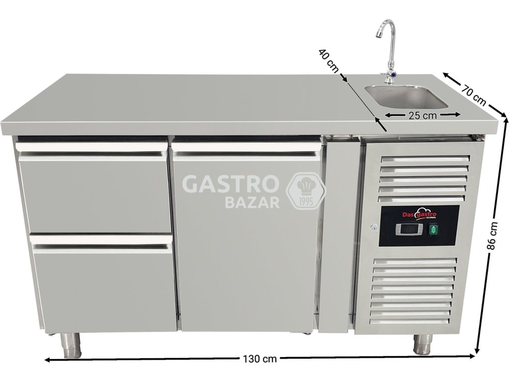 Chladicí stůl s dřezem, 1 dvířky a 2 šuplíky vlevo