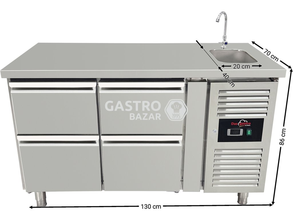 Chladicí stůl s dřezem a 4 šuplíky