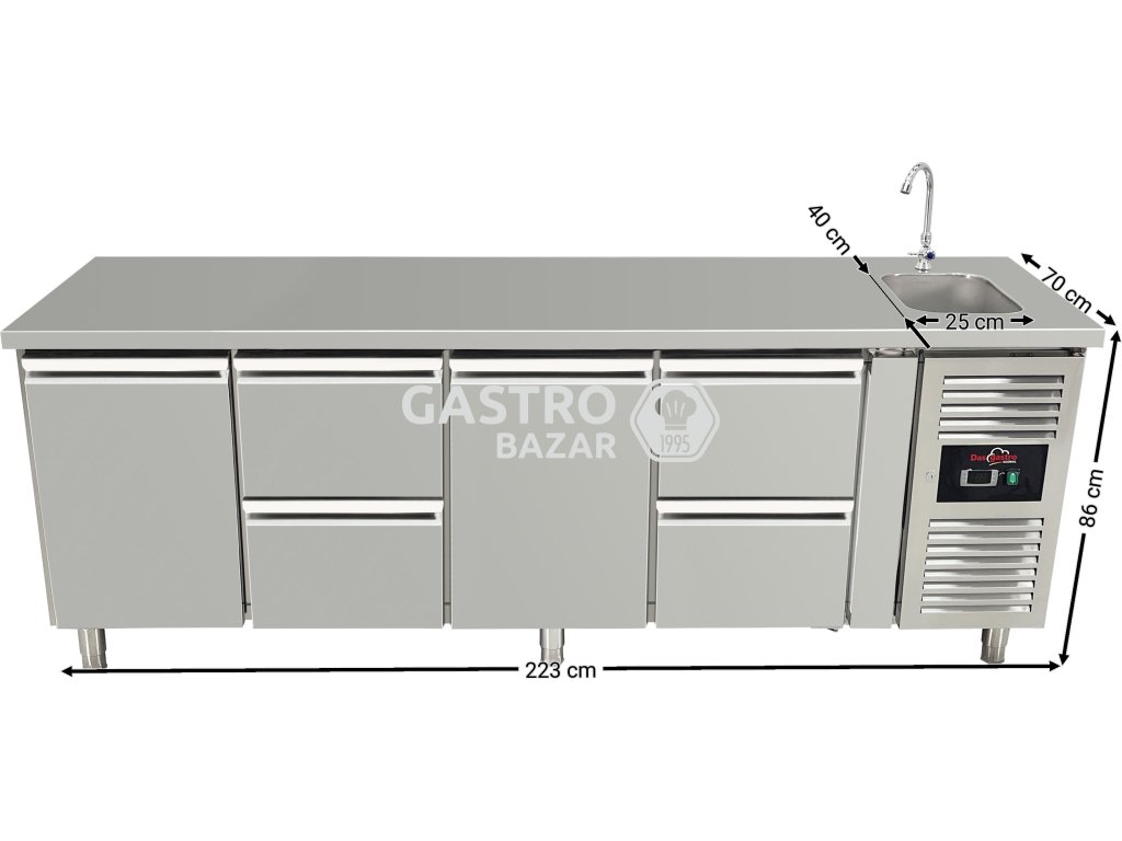 Chladicí stůl s dřezem se 2 dvířky a 4 šuplíky střídavě vpravo
