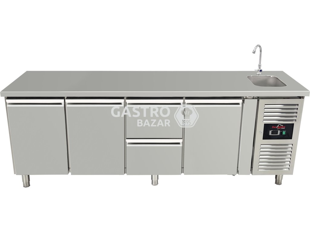 Model DAS4100TNSTRE je kombinací výkonného chladicího zařízení a praktického dřezu. Vhodný pro provozy, které potřebují dostatek místa pro uskladnění chlazených potravin a zároveň mycí zónu integrovanou do jednoho funkčního celku.