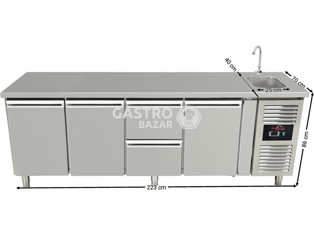 Velkokapacitní pracovní a chladicí stůl s dřezem – ideální do profesionální kuchyně