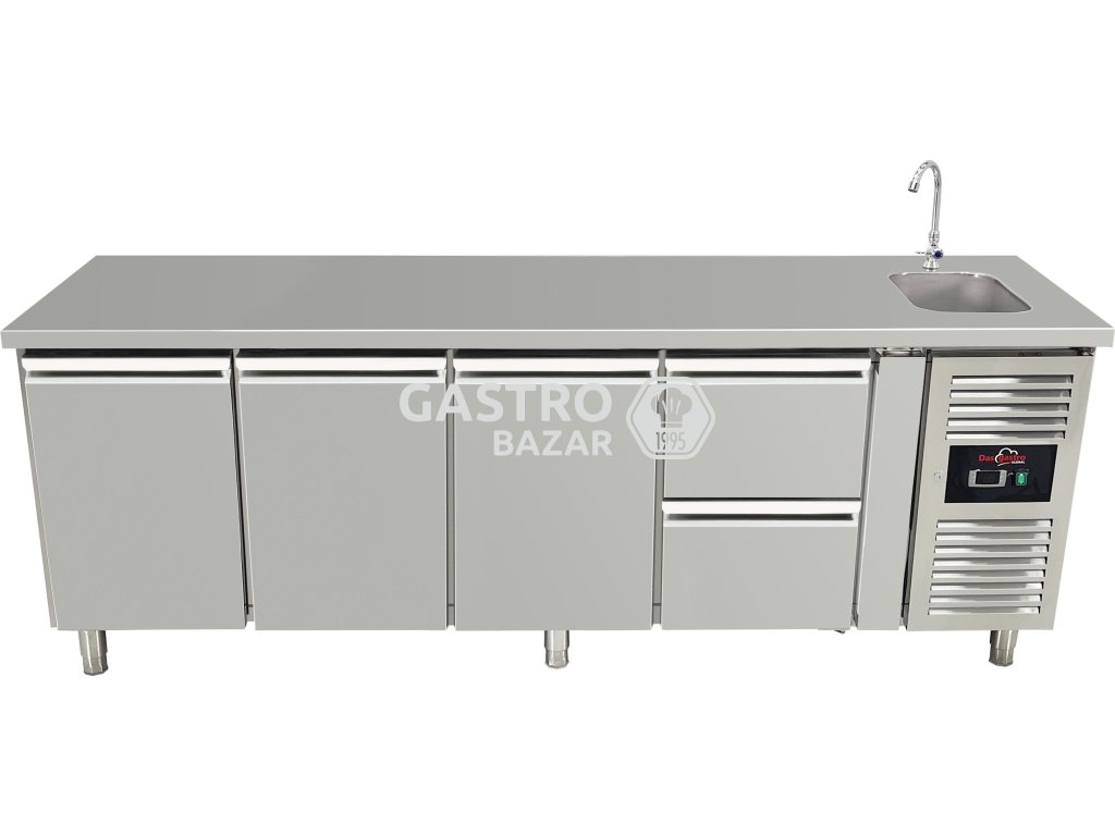 Chladicí stůl s dřezem se 3 dvířky a 2 šuplíky vpravo