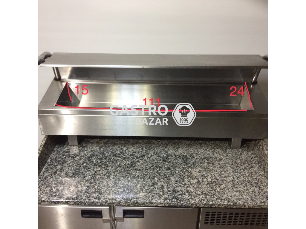 Použitý chladící stůl se saladetou, stůl je určený pro přípravu pizzy.