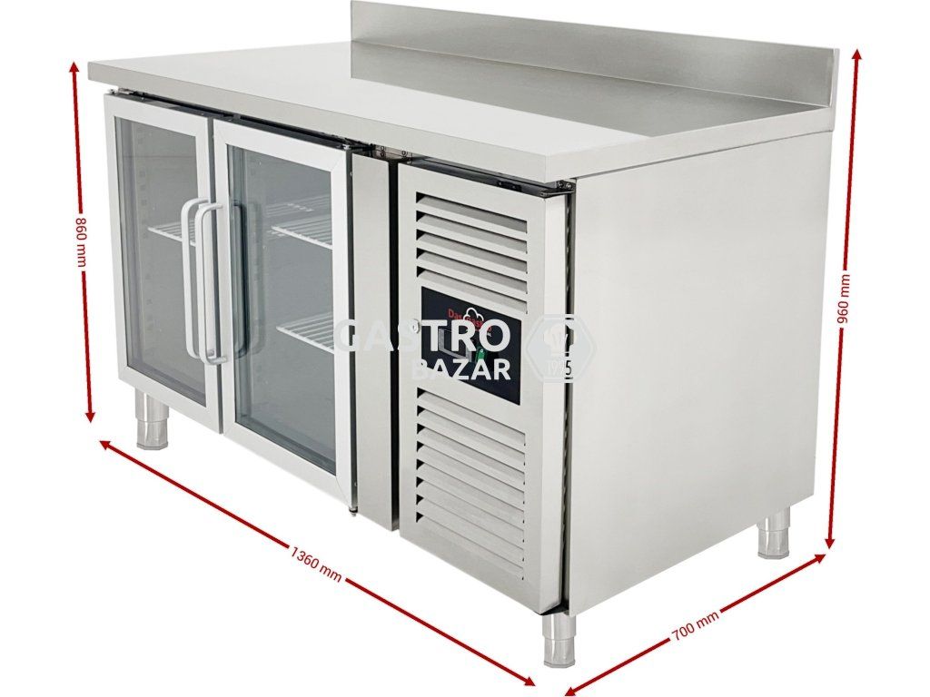 Chladicí stůl se 2 skleněnými dvířky a zadním lemem