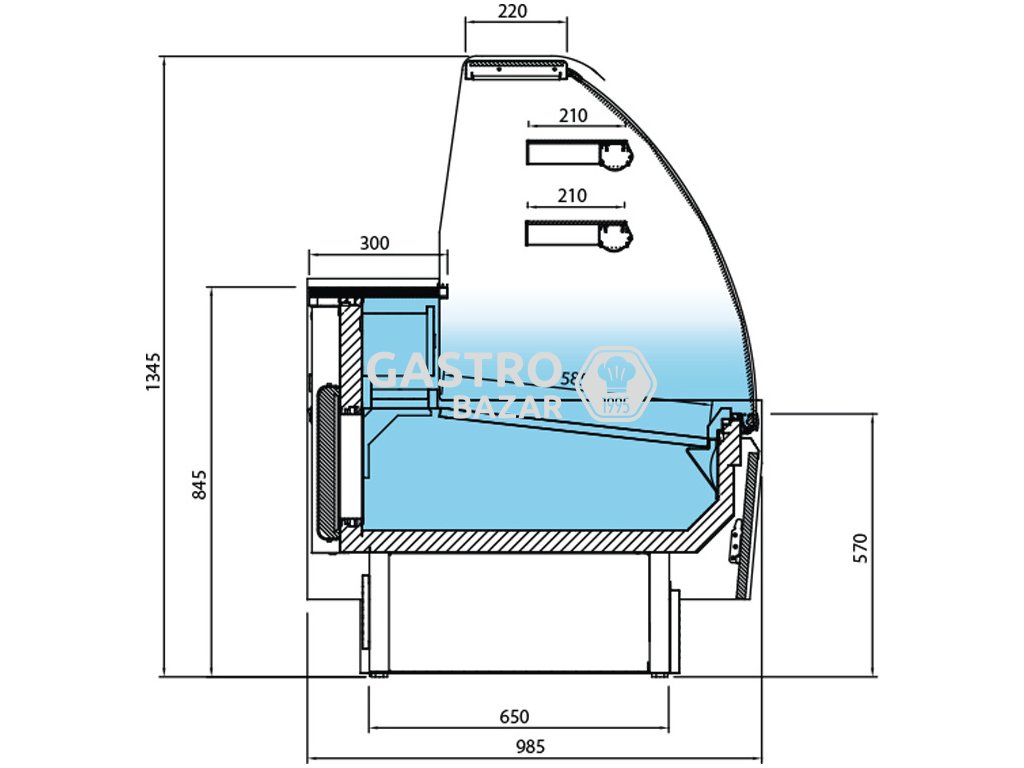 Cukrárenský pult zaoblený 0,99 m / 0,98 m