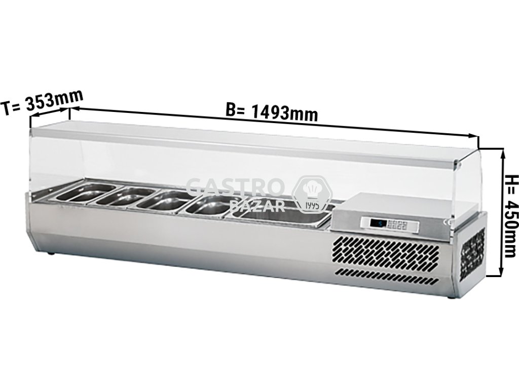 Chladící vitrína 1,5 x 0,35 m - pro 6 x GN 1/4