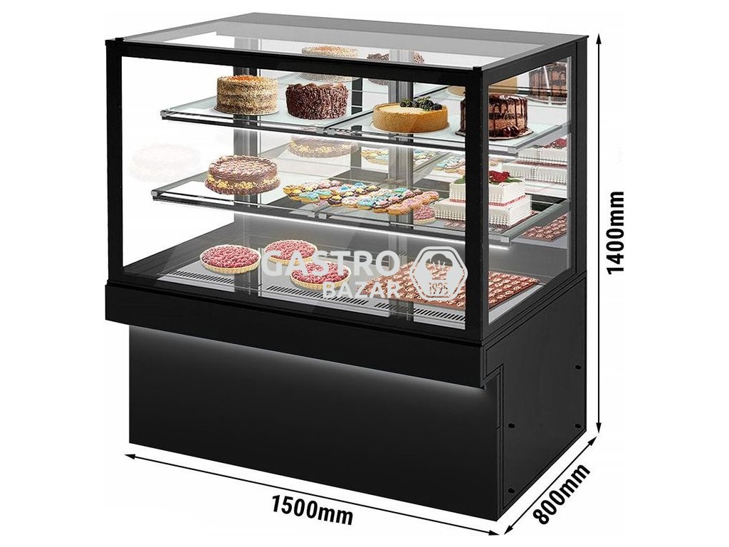 Cukrárenská vitrína TORONTO - 1500 mm - černé čelo - LED osvětlení - 3 police