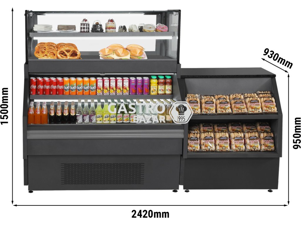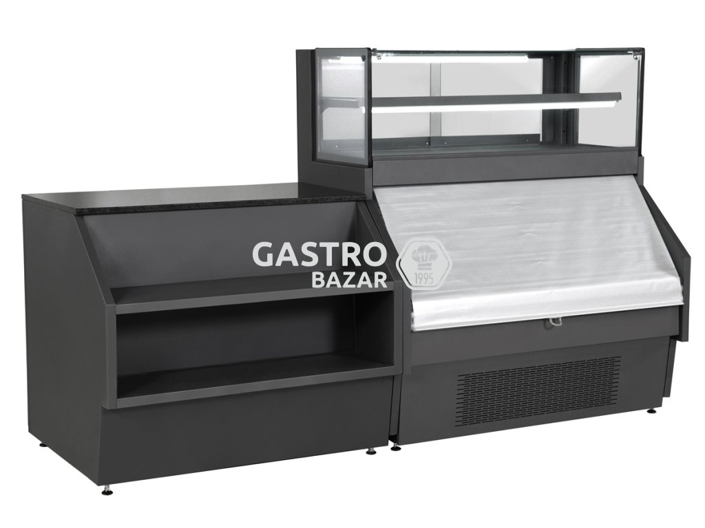 Cukrářská vitrína s chladícím pultem 1,32 m a pokladním stolem 1,1 m - model Cora