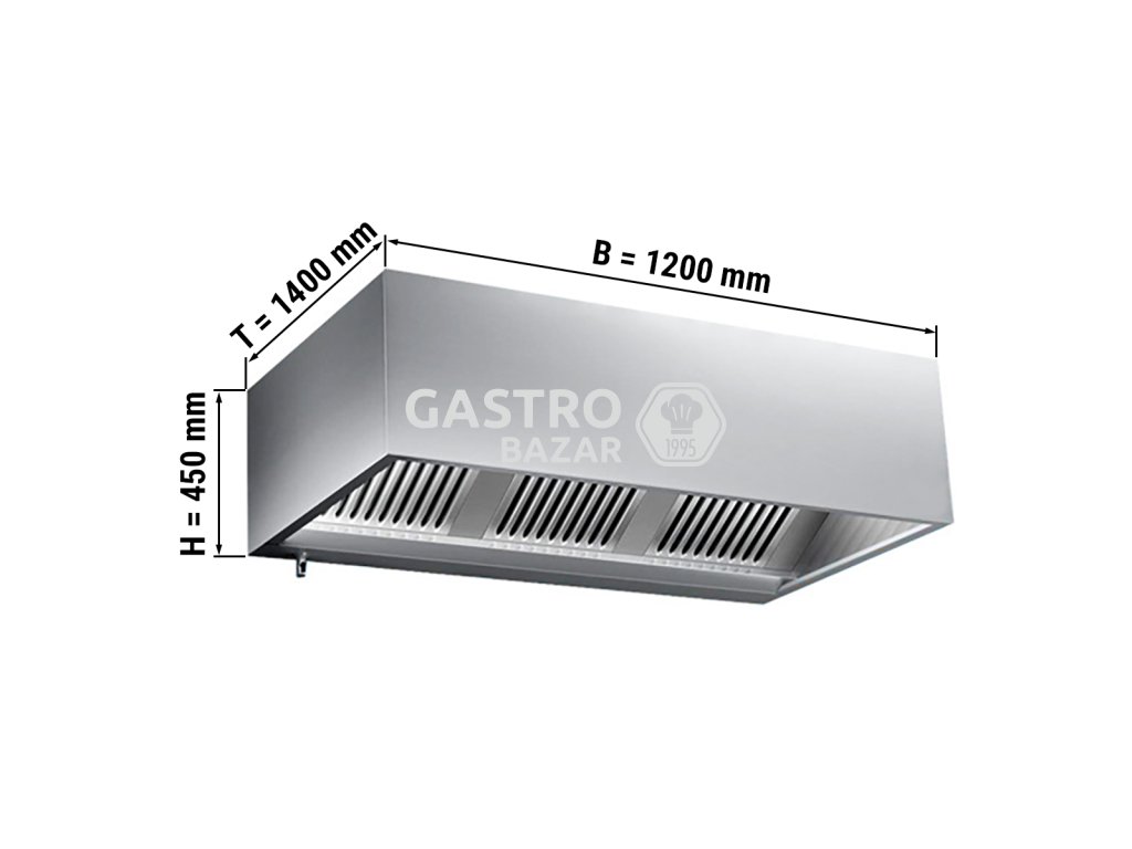 Digestoř 1,2 m - s filtrem a lampou- hloubka: 1400 mm