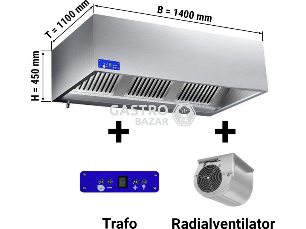 Digestoř 1,4 m - s motorem, ovladačem, filtrem a světlem- hloubka 1100 mm