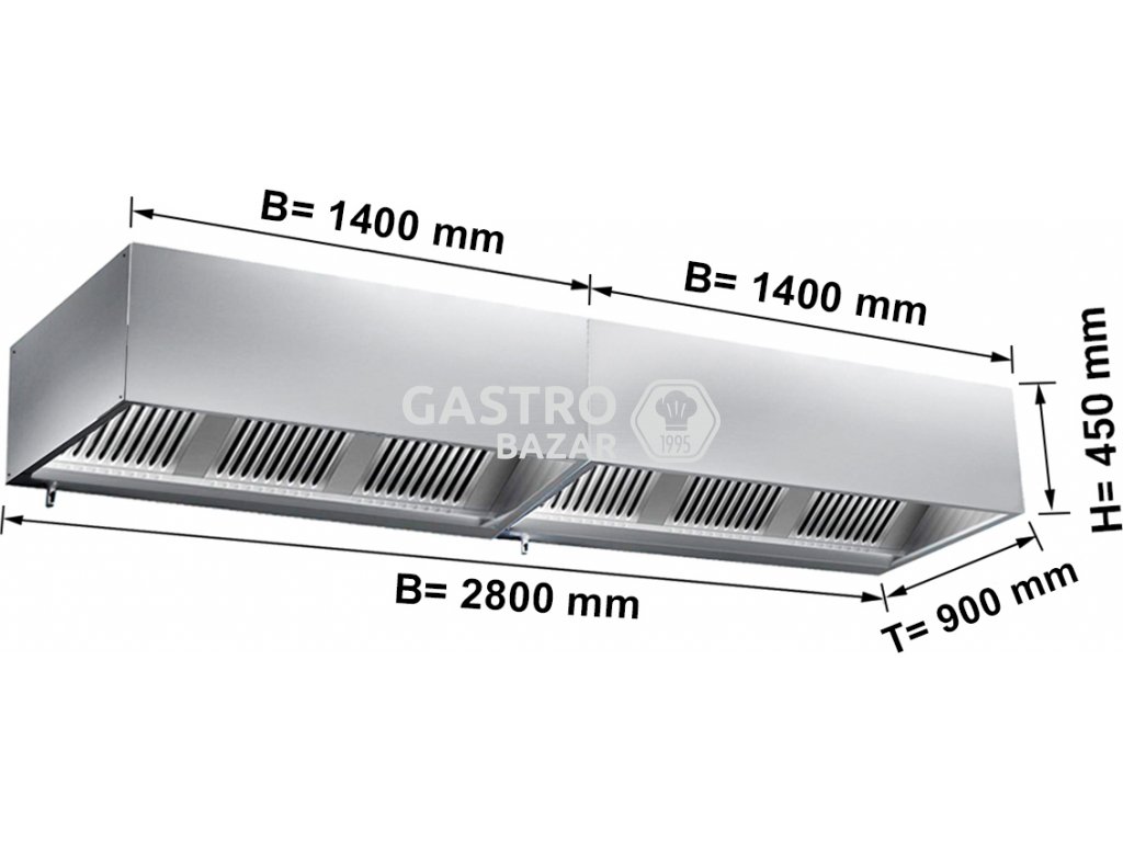 Digestoř 2,8 m - s filtrem a světlem- hloubka 900 mm