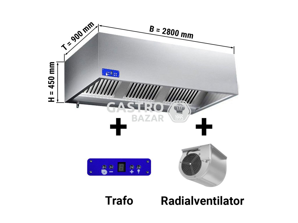 Digestoř 2,8 m - s motorem, ovladačem, filtrem a světlem- hloubka 900 mm