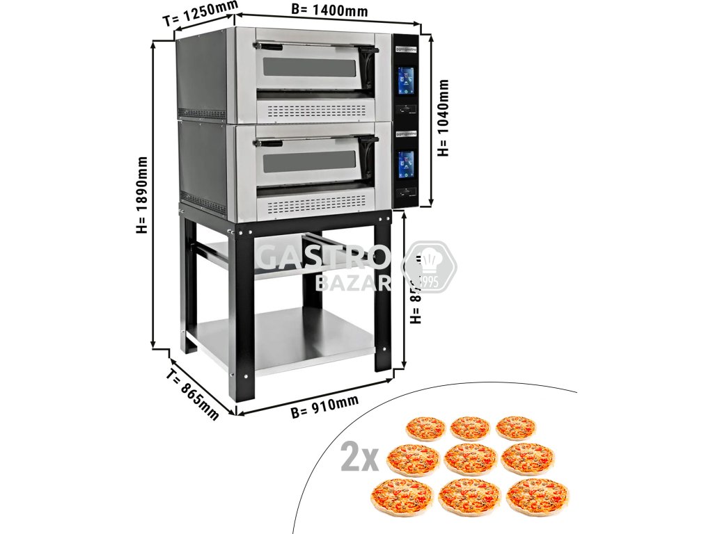 Digitální plynová pizza pec - 9 + 9x 30 cm - včetně základny