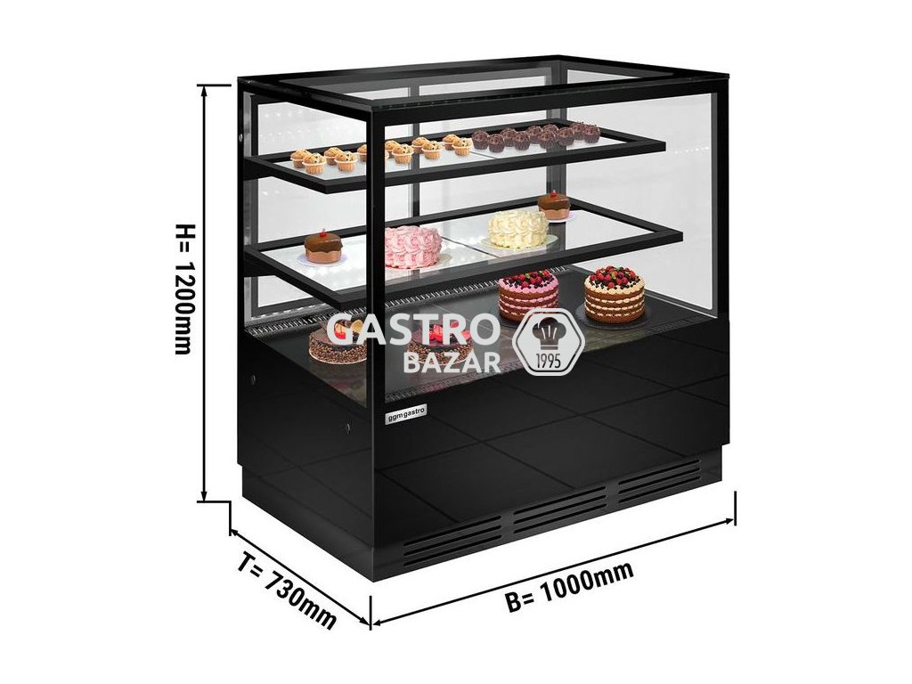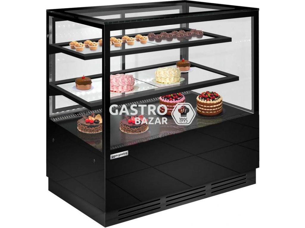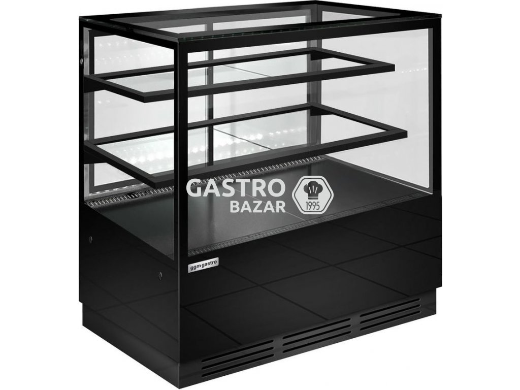 Cukrárenský pult - 1,0 m - 2 police - zrcadlová přední strana - hranatý (LED)
