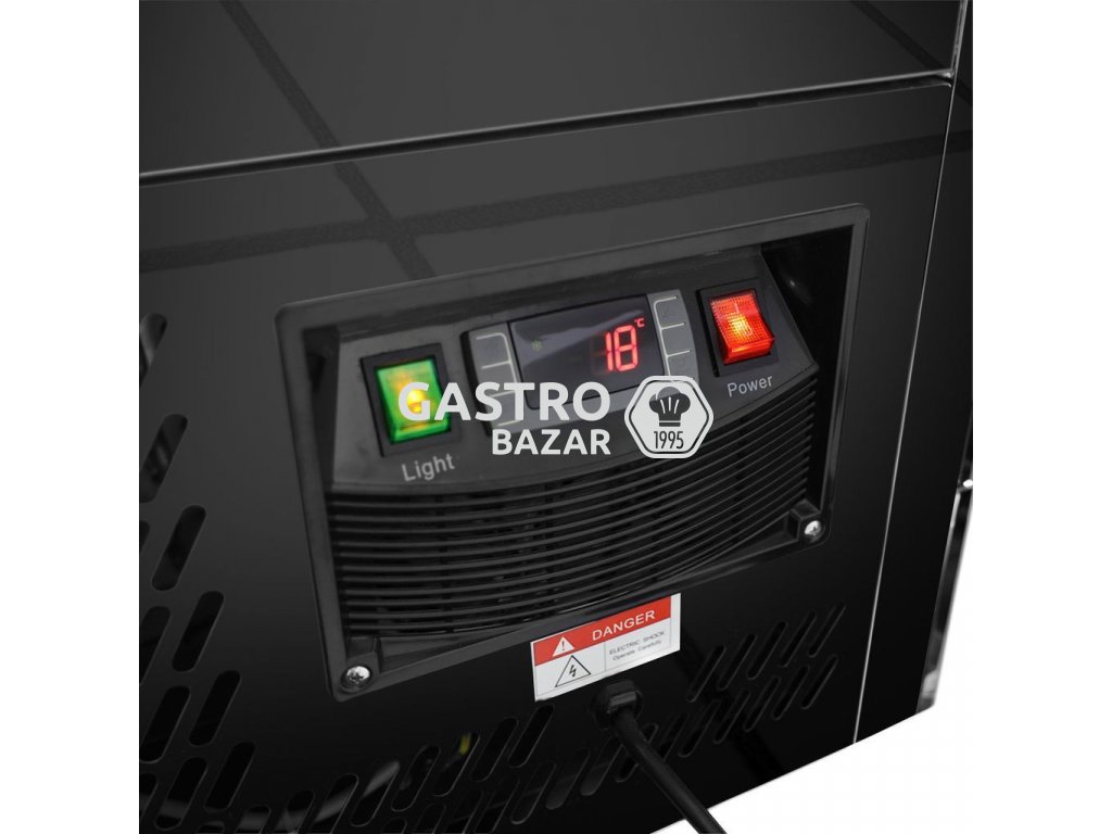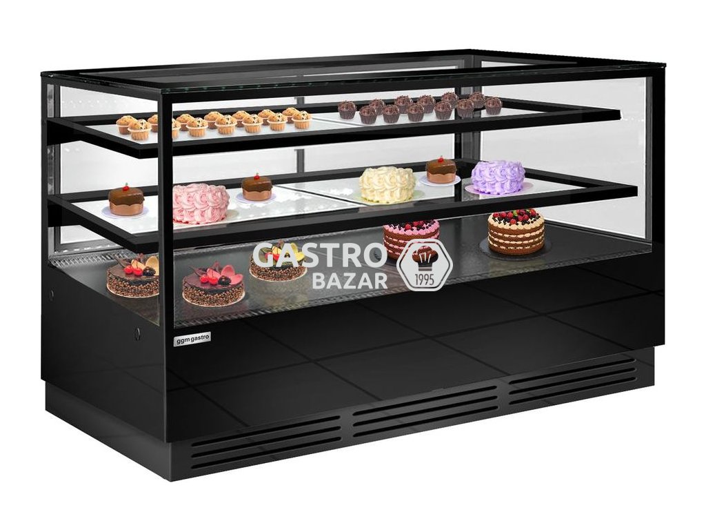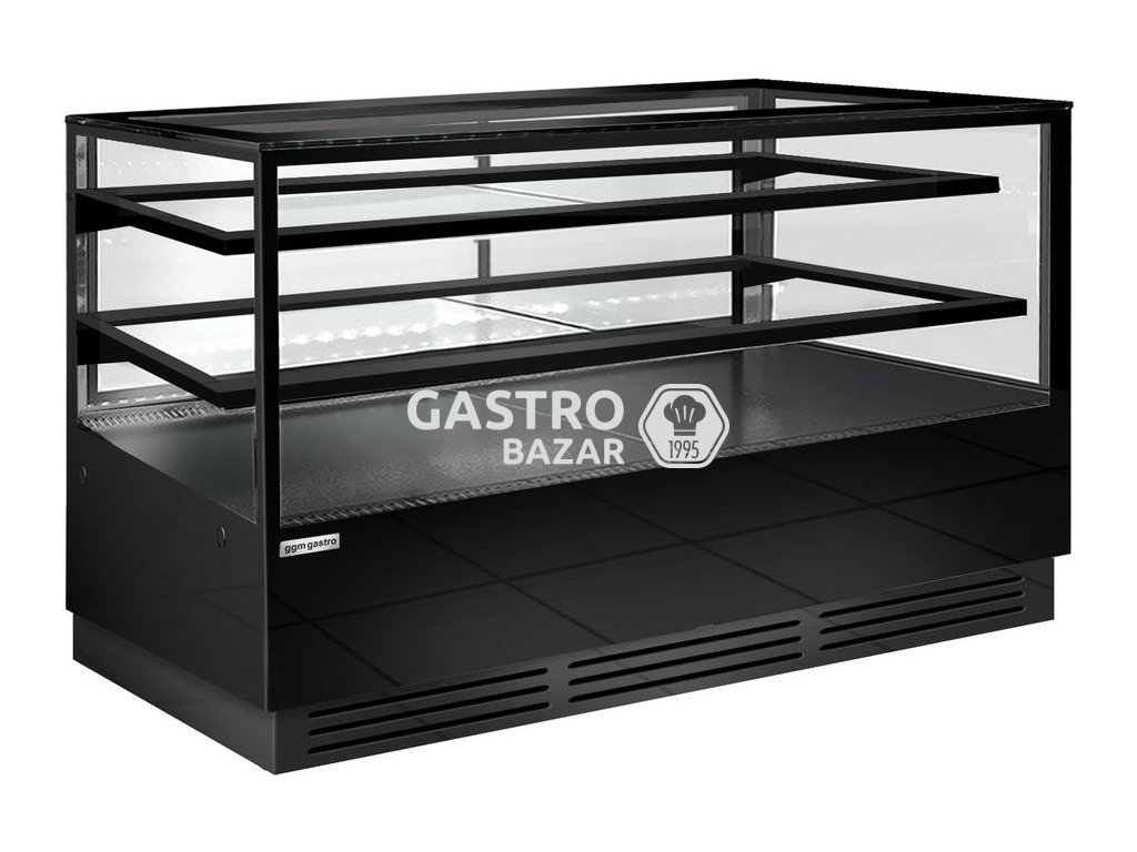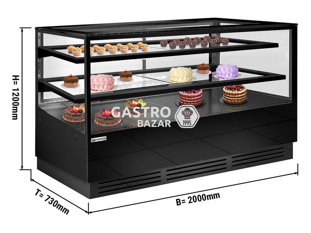 Cukrárenský pult - 2,0 m - 2 police - zrcadlová přední strana - hranatý (LED)