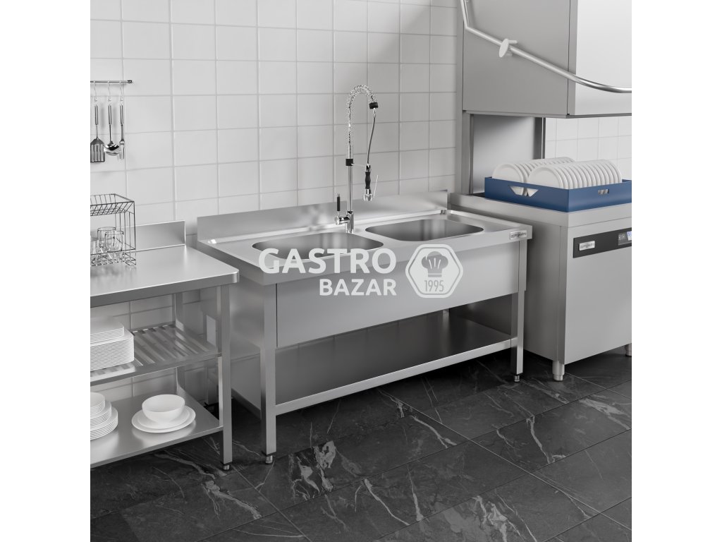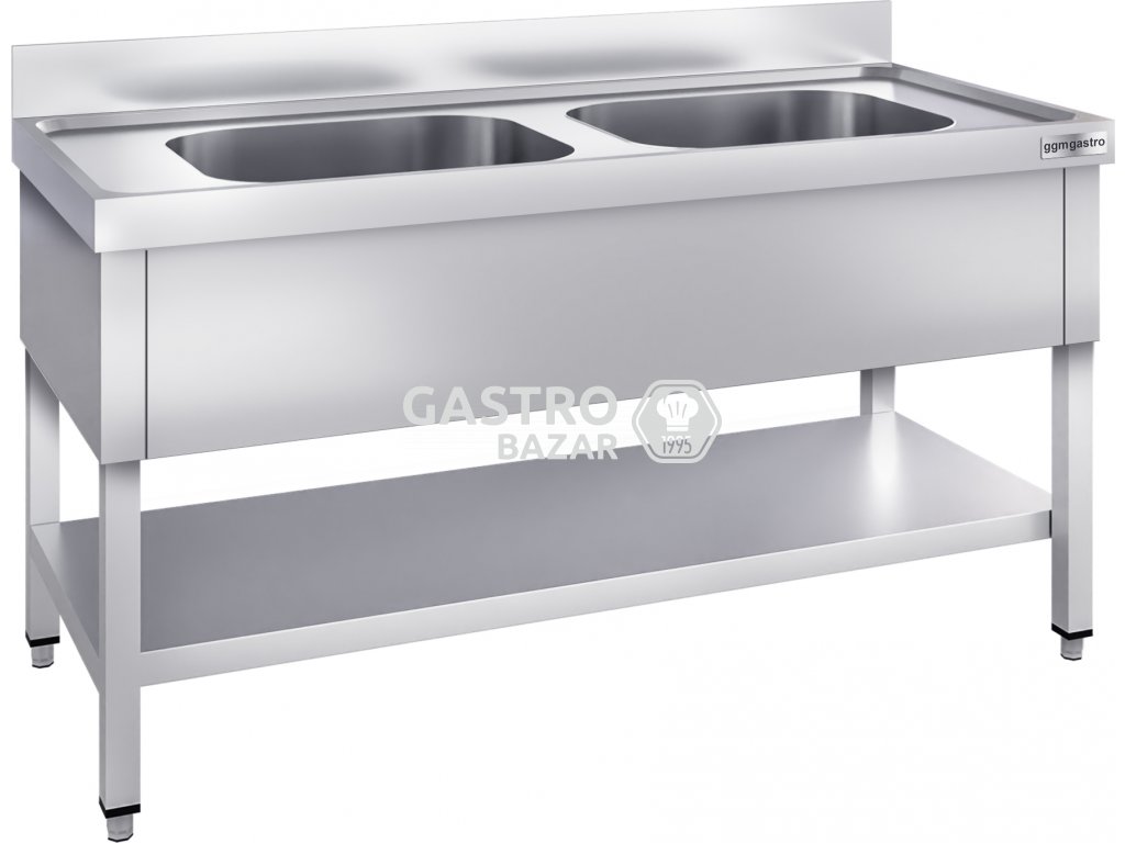 Dřez nerezový s policí 1,4 m, 2 dřez uprostřed, hloubka 60 cm