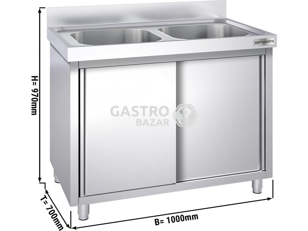 Dřez nerezový s posuvnými dveřmi 1,0 m, 2 dřezy uprostřed, hloubka 60 cm