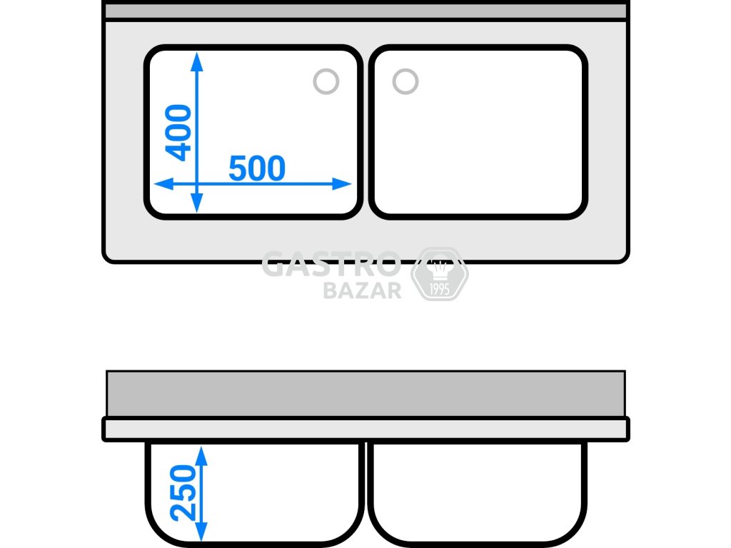 - Pracovní deska z nerezové oceli s dvojitou stěnou