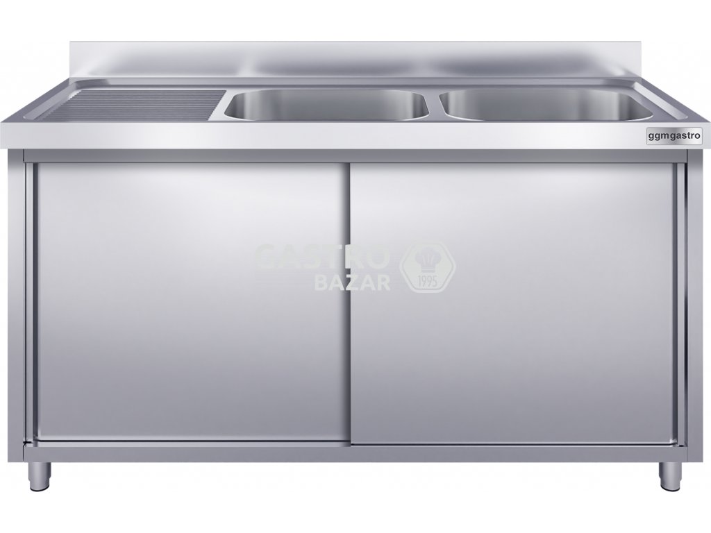 Dřez nerezový s posuvnými dveřmi 1,4 m, 2 dřezy vpravo, hloubka 60 cm