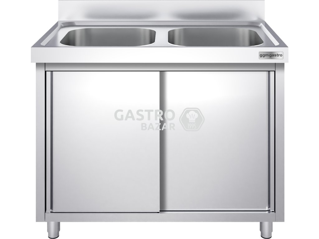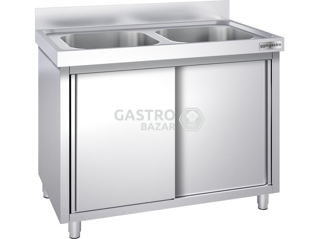Dřez nerezový s posuvnými dveřmi 1,6 m, 2 dřezy uprostřed, hloubka 70 cm