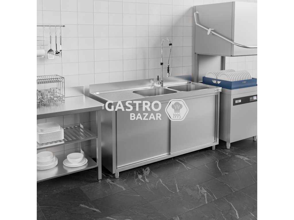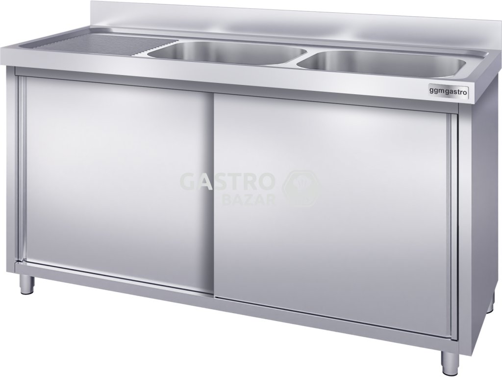 Dřez nerezový s posuvnými dveřmi 1,6 m, 2 dřezy vpravo, hloubka 60 cm