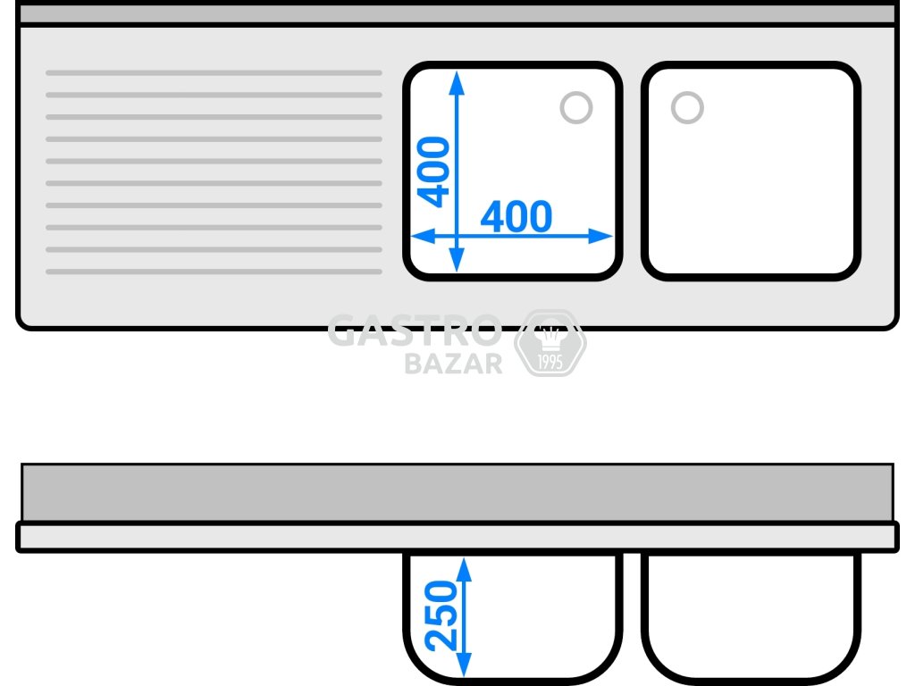 - Pracovní deska z nerezové oceli s dvojitou stěnou