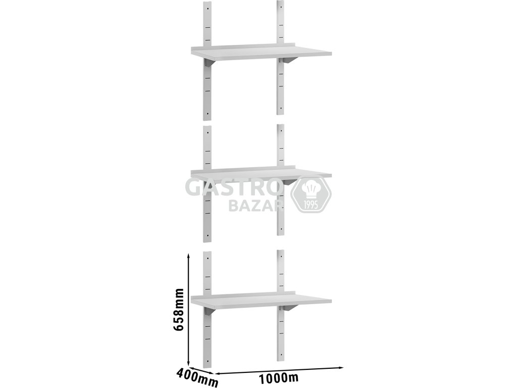 ECO Nástěnná police - 1,0 x 0,4 m - 3-patrová