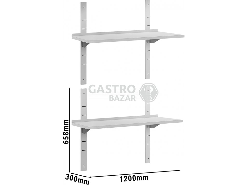 ECO Nástěnná police - 1,2 x 0,3m - 2-patrová