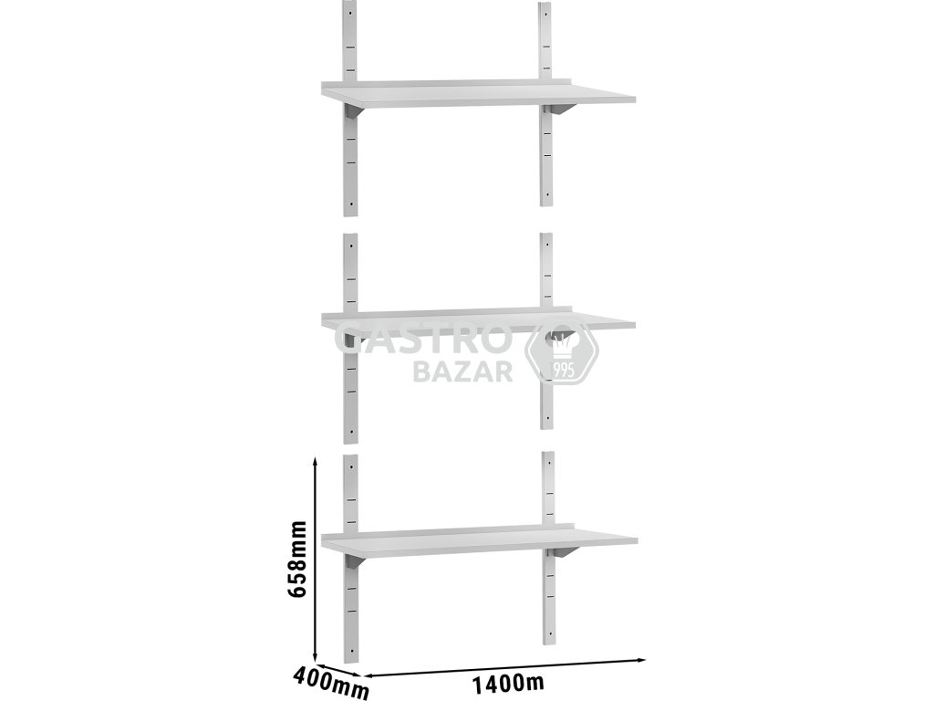 ECO Nástěnná police - 1,4 x 0,4m - 3-patrová